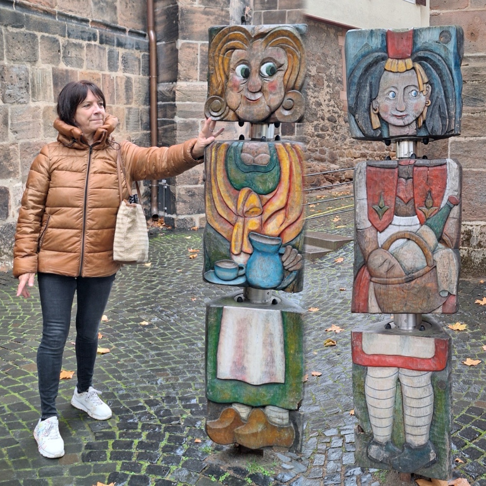 We checken uit rond 10 en rijden dan naar Marburg. Het bergstadje met een goed bewaard, sfeervol middeleeuws centrum, ligt aan de rechteroever van de Lahn en geniet vooral bekendheid voor zijn universiteit, die in 1527 de eerste protestantse universiteit ter wereld was. Het is ook wel een beetje de stad van de Gebroeders Grimm, je weet wel … die van de sprookjes. Over de stad zelf schreef Jacob Grimm: 'Ik geloof dat er meer trappen op de straten zijn dan in de huizen’. Dat is iets wat we al snel merken! Wanneer we de auto geparkeerd hebben, trekken we naar de oude stad. Deze is te bereiken door een steile klim maar eureka, er is ook een lift die het hoogteverschil tussen het boven- en benedendeel van de stad verbindt.