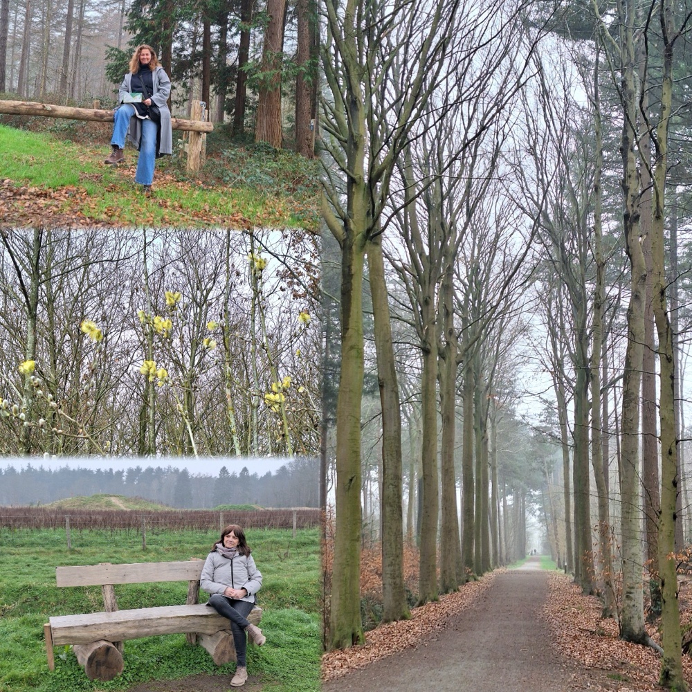We rijden naar Jabbeke voor de wandeling ‘de ronde van Vloethemveld’ en deze bestaat zoals de naam doet vermoeden uit een ronde door het natuur- en erfgoedgebied Vloethemveld.  Het is een gevarieerd gebied met bos, heide, graslanden en waterplassen van maar liefst 365 hectare. Het ideale decor voor een ontspannende wandeling dus. We horen de vogeltjes fluiten en we genieten van de rust en de schoonheid van de natuur. Verstillen, vertragen en veel babbelen met elkaar, heerlijk! Poelen herbergen een schat aan biodiversiteit, denk maar aan verschillende amfibieën zoals salamanders, kikkers en padden. De omgeving nodigt uit om te connecteren met de omgeving. Hier adem je vol en ruik je het groen. Alleen al het staren naar die boomkruinen boven ons, geeft rust.