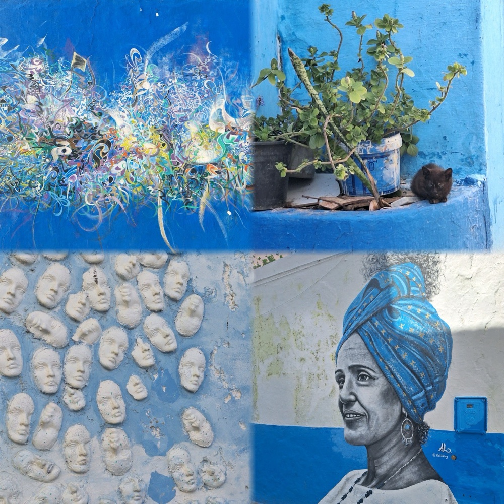 Samen dwalen we door de medina. Fouet brengt ons op plekken die we gisteren, tijdens onze avondwandeling door de stad, gewoon voorbij zijn gelopen. Achter onopvallende deuren blijken ambachtslieden aan het werk te zijn. Met onze gids is het toch iets gemakkelijker om de weg te vinden door het doolhof van staatjes en steegjes. Het zijn er maar liefst 9400, waarvan er vele gewoon doodlopen. We krijgen aanvankelijk een beetje dezelfde uitleg als gisteren mbt de deuren in de medina, maar af en toe vertelt hij ons toch nog iets dat we niet wisten. Zo weten we nu dat tot 1996 de Berbertalen enkel gesproken werden en niet geschreven. Die sierlijke letters in het berbers, bestaan dus nog maar 30 jaar.