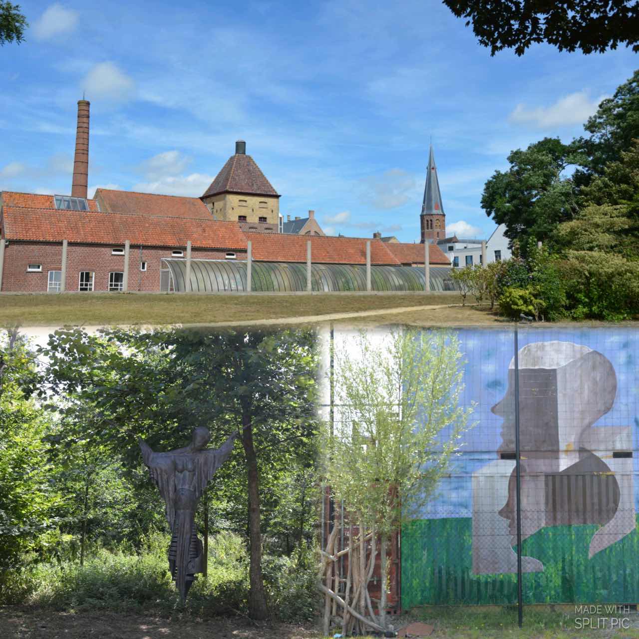 In de namiddag trekken we naar Koekelare, een dorp dat sinds jaar en dag kunstenaars aantrekt. Volgens de brochure ‘Koekelare kunstdorp’, zou er heel de zomer een artistieke sfeer hangen in en rond het dorp. Bij aankomst, gaan we eerst een kleinigheidje eten in restaurant Ma Maison. Het lijkt wel of we zitten op de vismarkt, wat een getater en het dialect is wat ons betreft Chinees. Eens ons buikje gevuld starten we aan de wandeling, benieuwd naar de kunstwerken op onverwachte plekken. Kunst loert hier achter elke hoek. Zowel aanstormend talent als gevestigde waarden krijgen hier de kans. Het is een mix van fotografie, beeldende kunst, poëzie en keramiek.