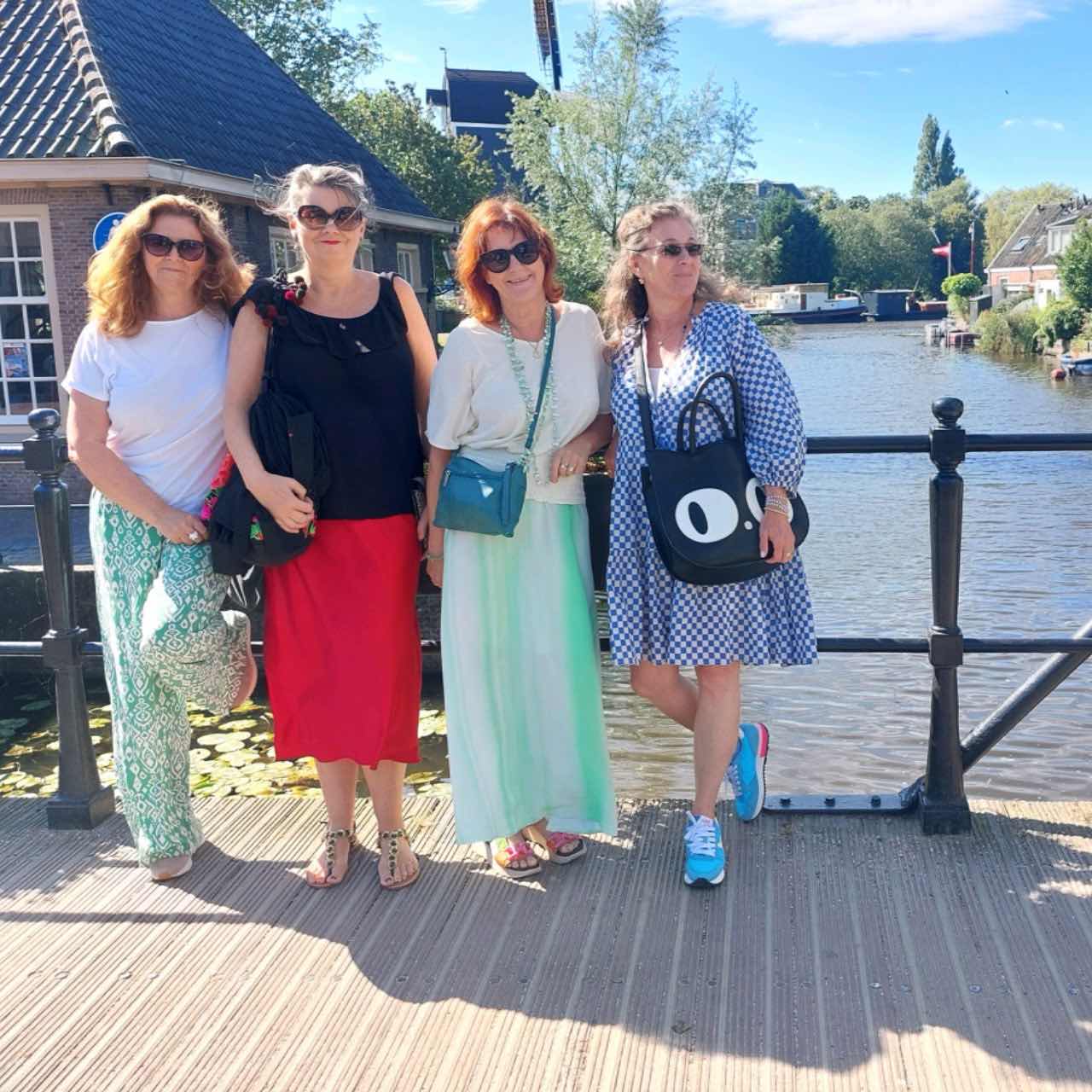 Van op de brug hebben we een prachtig zicht op de historische haven. Ook de man die met zijn bootje onder de brug vaart, net wanneer Machteld Tanja’s rok omhoog trekt, geniet van het uitzicht. Ik denk niet dat één van beide zich realiseert dat ze een toeschouwer hebben. Aan de andere kant van het Galgenwater wandelen we richting de Rembrandtplaats. Ze noemen het hier trouwens Galgenwater omdat er hier begin 17de eeuw veel galgen stonden waar misdadigers werden opgehangen.