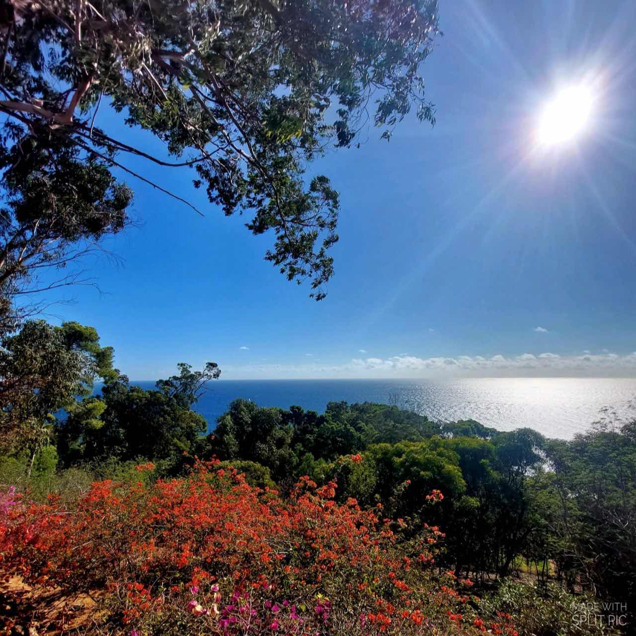De tuin wordt goed onderhouden en er bevinden zich meer dan duizend verschillende soorten planten van over de hele wereld. Omdat het op een bergtop is gelegen, moeten we best veel klimmen en dalen. Af en toe passeren we een soort ‘secret garden’ waar er bankjes staan om uit te rusten. Papa besluit zich hier te positioneren terwijl ik de tuin verder ontdek. Ik daal en klim tot ik er zelf een beetje moe van word. Achtereenvolgens passeer ik prachtige cactussen, veel geurende kleurrijke bloemen alsook een soort tuin met allerlei kruiden. Tussen de planten bevinden zich enkele kunstwerken.