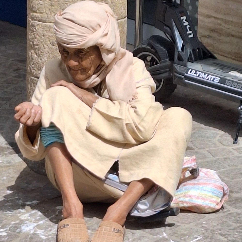 Wanneer we terug buiten komen, is de wind een beetje gaan liggen en brandt de zon opnieuw. De temperatuur is gestegen naar 27 graden. Sommige vrouwen zijn van top tot teen in een grote nikab gehuld, het typische omvangrijke katoenen kledingstuk dat alleen de ogen en voeten onbedekt laat. Als Westerling vraag je je dan toch een beetje af wie er onder de bedekkende kleding zit en wat ze hier doet. We houden er niet echt van want je weet nooit met wie je te maken hebt.