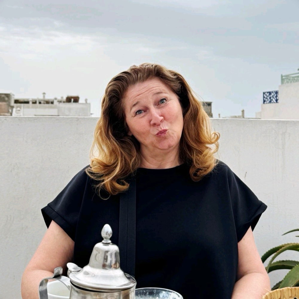 Plots komt er een hevige wind opzetten. We zijn net bij het strand toegekomen en moeten onze ogen beschermen tegen de rondvliegende zandkorrels. We krijgen ook een gratis peeling. De bijnaam van Essaouira ‘Wind City of Africa’ lijkt vandaag goed gekozen. Voor windsurfers en kitesurfers zijn de omstandigheden ideaal. Snel verlaten we de kuststrook en duiken terug de medina in. We dwalen nog wat verder door de straatjes, maar ondanks de hoge stadsomwalling, giert ook hier de wind door onze haren. We besluiten om iets te gaan drinken bij l’Atelier, een café / winkel, want hier is het zalig zitten en ze hebben er bovendien heel lekkere taartjes. Ik ga voor de carotcake en Dee Dee voor de amandine.