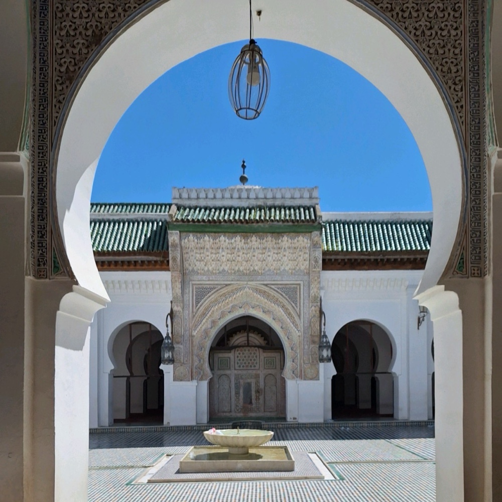 We laten ons meevoeren door de wirwar van steegjes, waar de geur van leer onze neus prikkelt en we ogen tekortkomen. Er is van alles te ontdekken. Wanneer we de Kairaouine moskee passeren, zien we dat de deuren openstaan dus maken we van de gelegenheid gebruik om even binnen te gluren. De moskee heeft twintigduizend zitplaatsen en heeft haar plekje weten te veroveren in het hart van de medina. Ze huisvest zowel de oudste universiteit als de oudste bibliotheek ter wereld. Ze is zo naadloos geïntegreerd in de medina dat we er bijna langslopen zonder het te merken! Toegang is verboden voor niet-moslims, zoals bij alle moskeeën in het land.