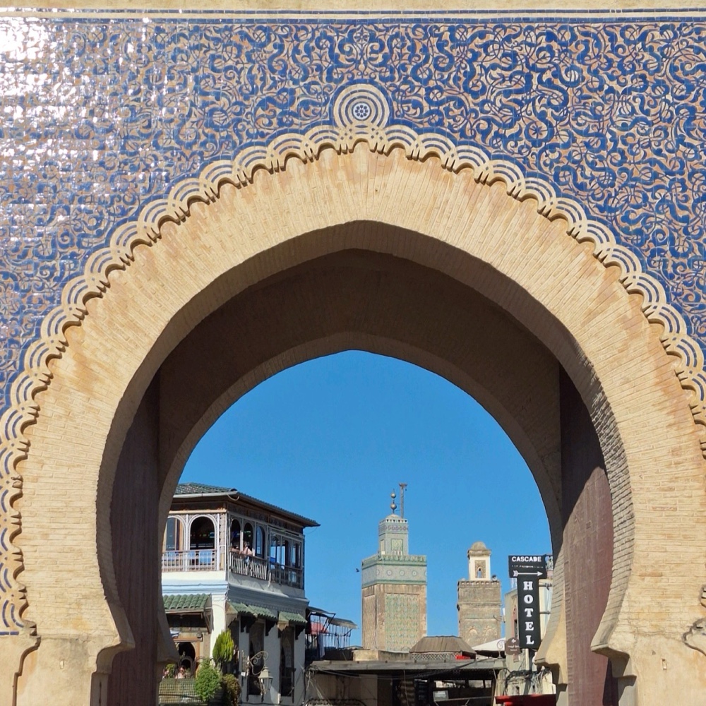 De Bab Bou Jeloud, ook wel de Blauwe Poort, is een sierlijke boog die aan de ene kant kobaltblauw is met prachtige mozaïeken en aan de andere kant groen, symbool voor de islam. Het is het perfecte eindpunt van onze ontdekkingstocht door de medina.