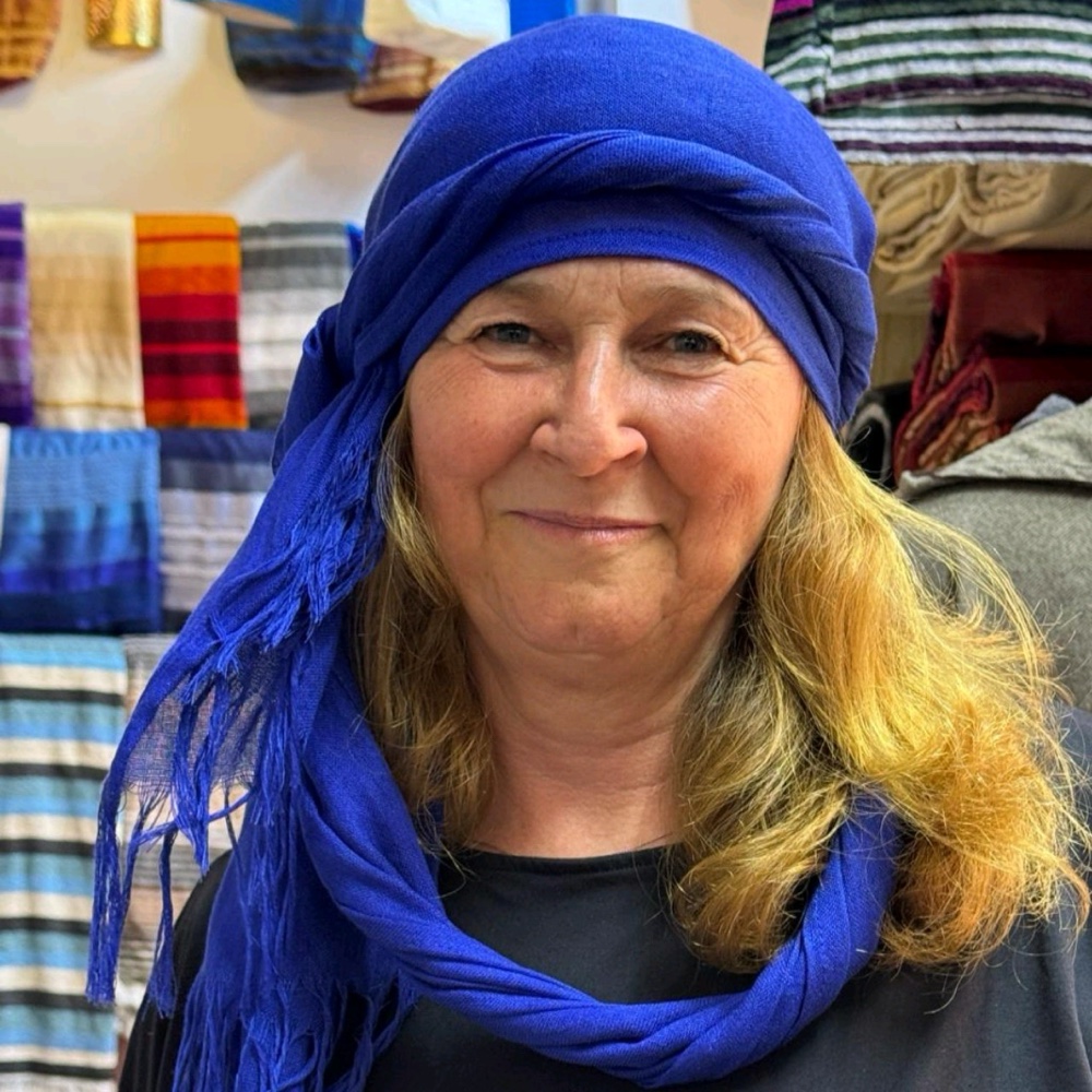 We komen regelmatig portretten van de koning tegen, mooi ingelijst en prominent tentoongesteld, zowel in winkels als in de steegjes van de medina. Elke Marokkaan is begeesterd door Mohammed VI. Verder staat Fez ook bekend om het handwerk, vooral om de vele tapijten. Tapijtverkopers zijn overal in de hoofdstraten van de medina te vinden, elk met mooie Marokkaanse ontwerpen. In eentje worden we ontvangen met een glaasje muntthee en de verkoper ontvouwt het ene tapijt na het andere. Ze zijn mooi maar ik heb er geen plek voor. Bij een weverij zien we hoe traditionele Marokkaanse stoffen met de hand worden gemaakt. Er worden zijde, katoen en aloe vera vezels gebruikt. Even wordt ik omgetoverd in een Marokkaanse vrouw. Mooie kleur wel, maar ik bedank vriendelijk.