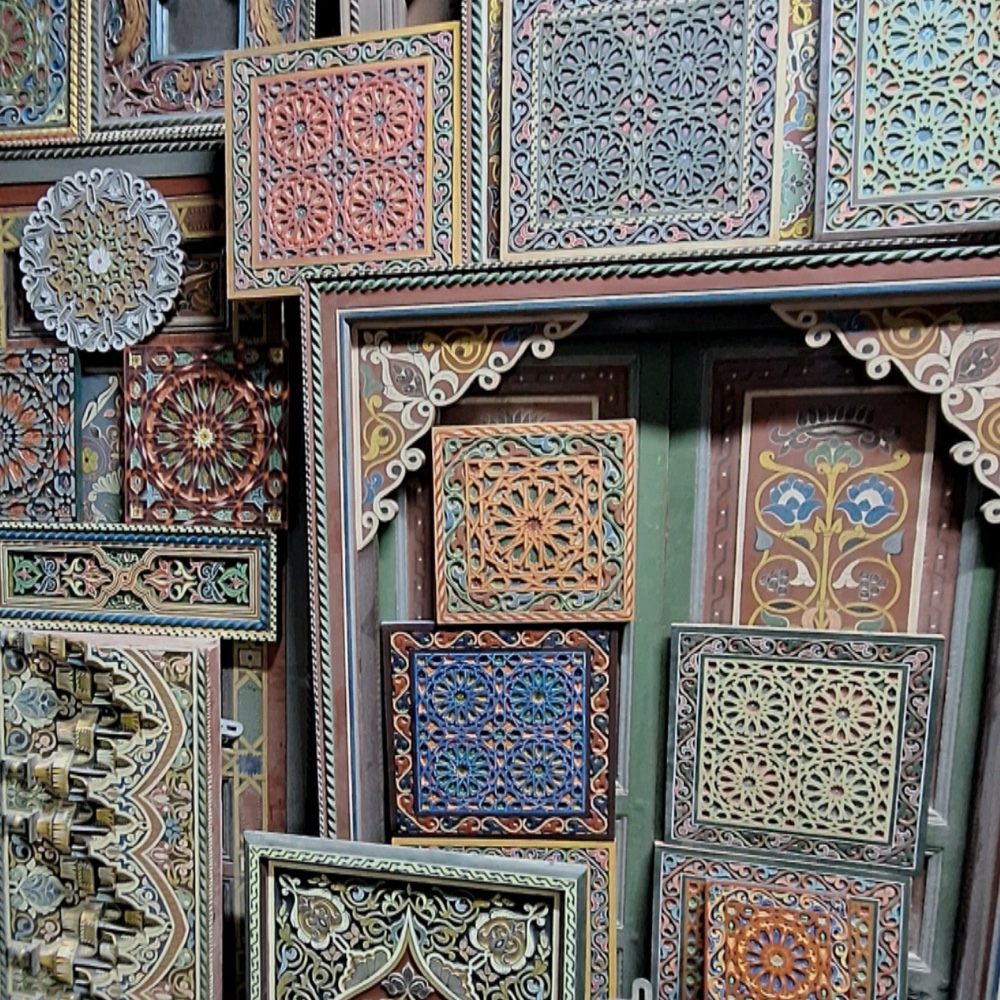 Samen dwalen we door de medina. Fouet brengt ons op plekken die we gisteren, tijdens onze avondwandeling door de stad, gewoon voorbij zijn gelopen. Achter onopvallende deuren blijken ambachtslieden aan het werk te zijn. Met onze gids is het toch iets gemakkelijker om de weg te vinden door het doolhof van staatjes en steegjes. Het zijn er maar liefst 9400, waarvan er vele gewoon doodlopen. We krijgen aanvankelijk een beetje dezelfde uitleg als gisteren mbt de deuren in de medina, maar af en toe vertelt hij ons toch nog iets dat we niet wisten. Zo weten we nu dat tot 1996 de Berbertalen enkel gesproken werden en niet geschreven. Die sierlijke letters in het berbers, bestaan dus nog maar 30 jaar.