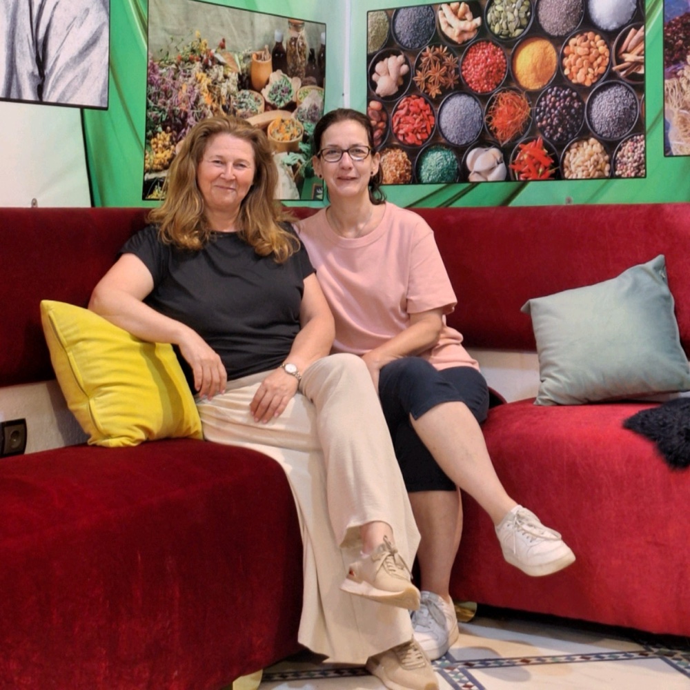 Bij de plaatselijke apotheek, zoals Fouet het noemt, leren we het verschil tussen arganolie en amandelolie. Ze verschillen vooral in textuur. Daar waar arganolie van de pit uit de vrucht van de arganboom komt, snel intrekt en gebruikt wordt als anti-aging serum, wordt de amandelolie gewonnen uit de zaden van de amandelboom en is het een rijkere, diep voedende olie die vooral gebruikt wordt bij droge huid om te masseren.